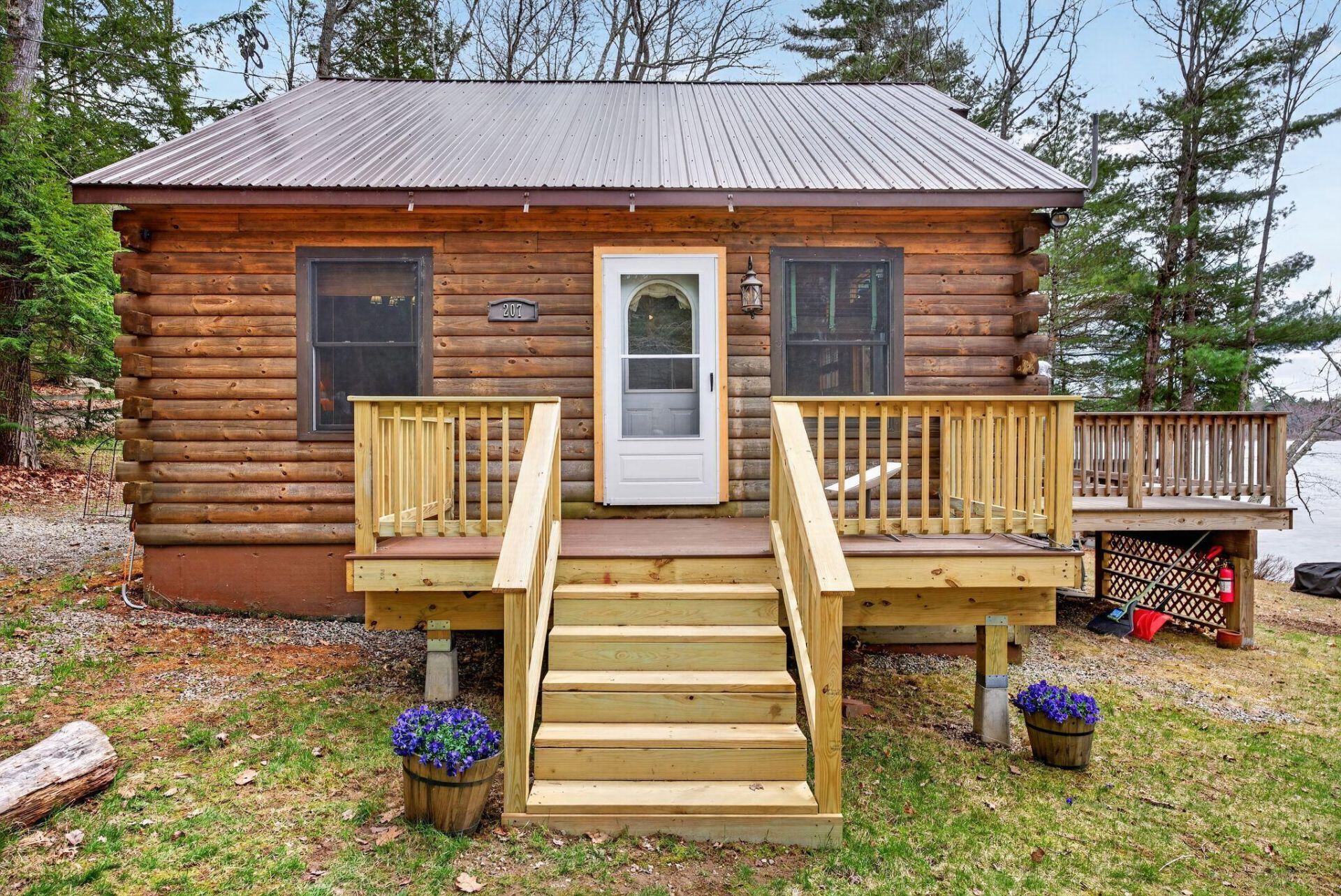 Set on a quiet wooded lot with 122 feet of owned frontage on Three Mile Pond, 207 70th Fire Road offers a true Maine waterfront experience--private, peaceful, and directly connected to the water.This log-style property features a 2-bedroom, 1-bath main home with warm wood finishes and inviting living spaces that reflect classic cabin charm. A separate 1-bedroom, 1-bath seasonal cottage provides excellent flexibility, whether for guests or as a rental opportunity, supported by a strong rental history.The setting is what truly sets this property apart. The lot offers a rare combination of privacy and usable shoreline, creating an ideal environment for enjoying lake life--from quiet mornings on the porch to full days on the water and evenings gathered by the fire.Tucked away on a low-traffic fire road, the property feels like a retreat while still offering practical access and convenience. With its manageable size, natural surroundings, and income potential, this is a turnkey opportunity for those seeking a second home, seasonal escape, or investment property on one of central Maine's most desirable ponds. Property can be purchased turn-key and fully furnished, ready to use for your summer and rental experience