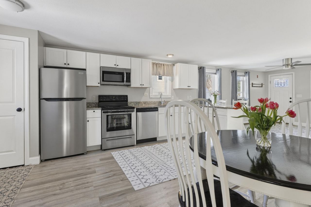 Set above street level on a quiet street that ends at the Presumpscot River, this beautifully renovated first-floor residence offers a rare balance of privacy and convenience. Located in a turn-of-the-century building updated for modern living, this place blends historic character with clean, transitional design. Walkable to downtown Westbrook and just one mile to the Portland border, the setting makes everyday living effortless while still feeling peacefully tucked away.Inside, a flexible three-bedroom layout easily adapts to your needs, whether for a home office, den, or guest space. Fresh paint and new luxury vinyl plank flooring run throughout, creating a bright, cohesive feel. The open-concept kitchen and living area is bright and inviting, showcasing new cabinetry, granite countertops, an oversized undermount sink, and stainless steel appliances--thoughtfully designed for both everyday living and easy entertaining.The bathroom has been stylishly updated with a high-end vanity and a tub/shower combination with subway tile surround. Additional upgrades include new interior doors, updated window and door trim, several replacement windows, and new light fixtures throughout. A new washer and dryer add everyday convenience.Two off-street parking spaces are located at the rear of the building, while the covered front porch offers a welcoming entry. An HOA garden boxes provides the perfect opportunity for those who enjoy growing their own flowers or herbs. Exterior-access basement storage adds valuable space for seasonal items, outdoor gear, and extras.Pets welcome. With low condo fees and a well-established association, this move-in ready home offers a rare combination of historic charm, modern updates, and an easy-living location--making it an excellent opportunity for both owner-occupants and investors alike.Open House Sunday 3/15
