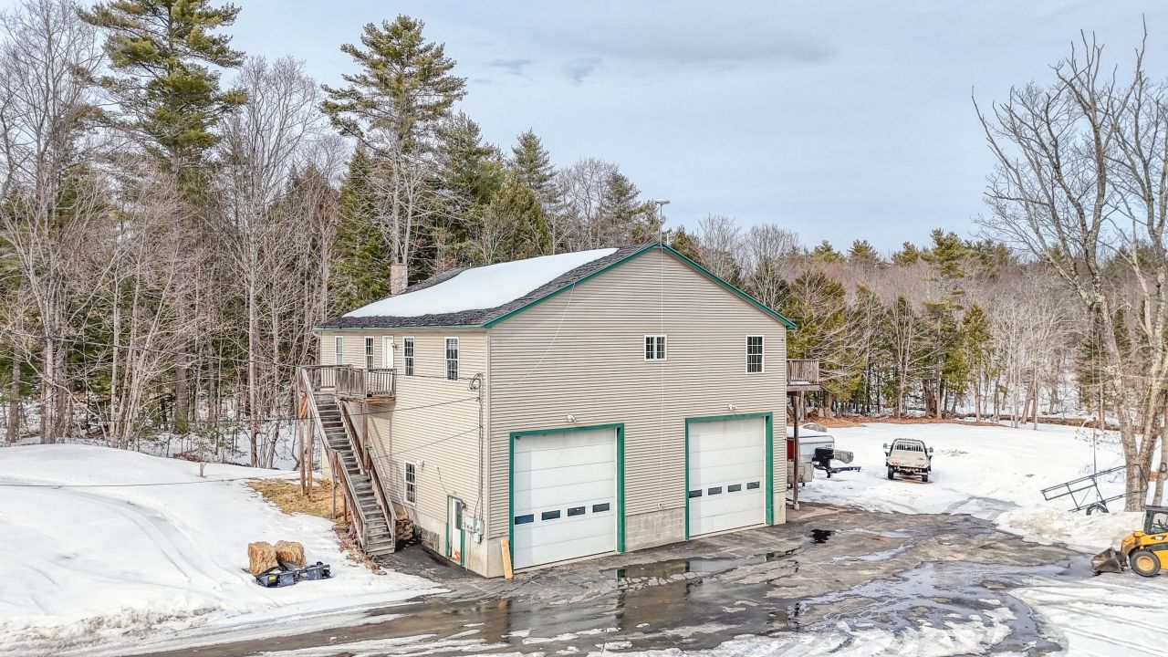 Unique opportunity to own a duplex set on 2.05 acres with 200' of frontage on Collyer Brook, a tributary of the Royal River known for trout fishing. Great opportunity for rental income or owner-occupancy while generating income from the second unit. Each unit features 2 bedrooms, open concept living, washer/dryer hookups, and a deck. The property also includes an oversized heated garage and workshop below with 16' ceilings and 14x14 garage doors, offering exceptional space for vehicle storage, equipment, or hobbies. Garage lifts are negotiable. Conveniently located with easy access to 95 and Lewiston/Auburn and just minutes to Pineland Farms offering year-round recreation including hiking and biking trails, cross-country skiing, disc golf, and more! Roof shingles to be replaced in the spring. Property has not been rented for the past 5 years by seller's choice