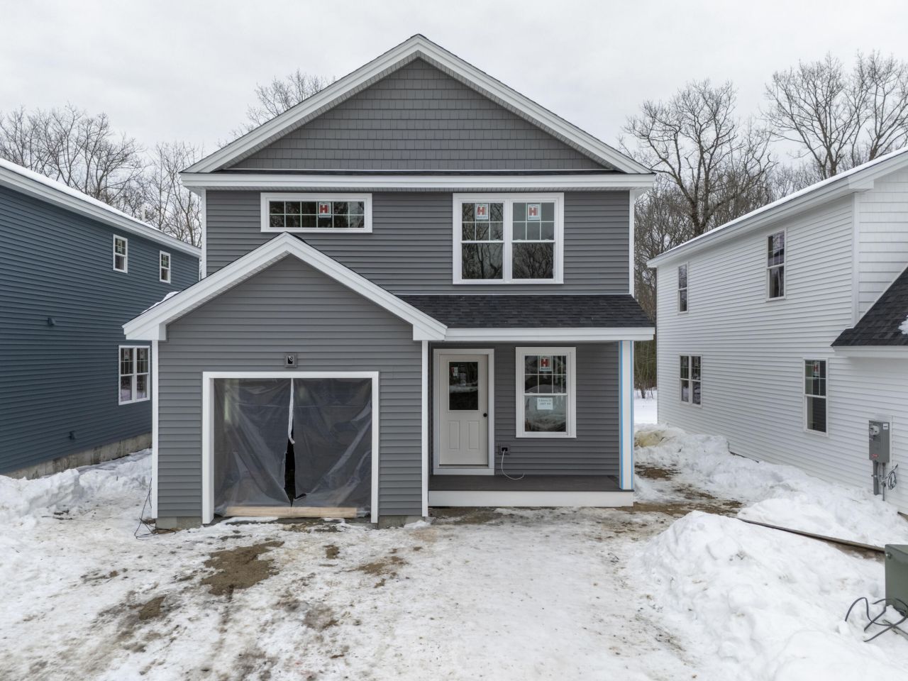 Model Home Finished! All units have been framed! Closing Date estimated June 1, 2026. Dogs welcomed at these detached condos located directly on the Eastern Trail !! Secluded setting off a dead end street, that's close to Shopping, Turnpike Exit, and Thornton Academy. Healthy, energy efficient, new construction with full sprinkler system, energy recovery ventilators for fresh air, full radon system, and full blower test to reduce energy consumption from air leakage. Heat pumps for cooling and heat. First floor has an exterior front porch; entry area w/closet; open KIT/DN//LV with hardwood floors and appliances; separate laundry room; guest bathroom; rear sundeck and attached 1-car garage. Upstairs has a huge primary BR w/en suite bathroom and walk-in closet; 2 good sized BRs; and another full bathroom. Low condo fees of 140! All units have full basements with varying ceiling heights for storage, so call now to get one with full basement height! Blaine St is a new street, not in GPS. GPS 47 Roebuck Avenue Saco ME. These units are in SACO. If your GPS takes you to Old Orchard or Ocean Park, you are in the wrong location.