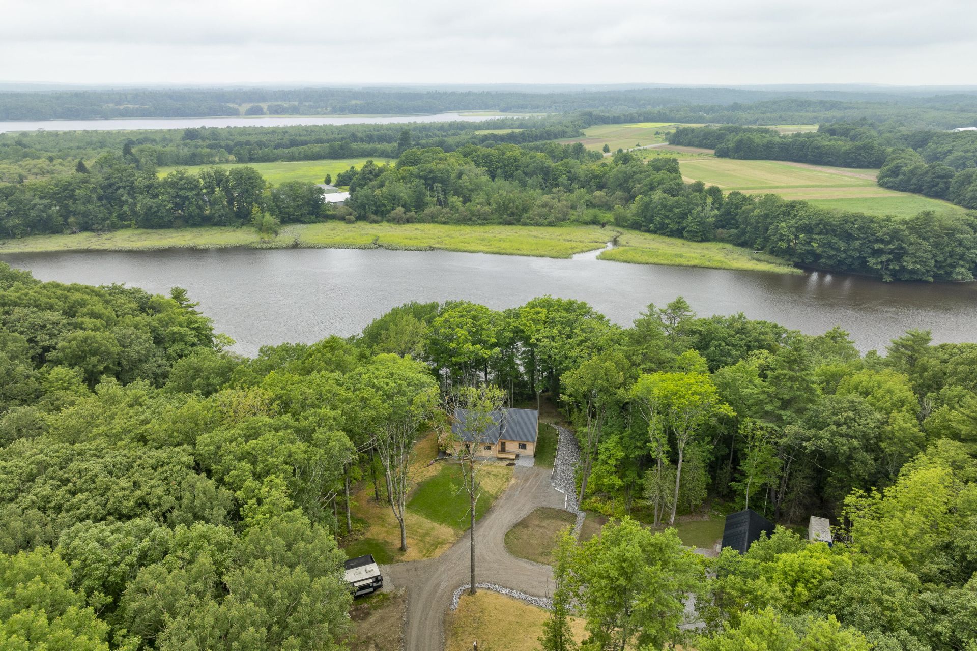 Set on an extraordinary 41+/- acres lot with approximately 1700 feet of frontage on the Eastern River, this Dresden property offers a rare blend of privacy , waterfront living and versatility. The 3-bedroom , 2.5 bathroom single-family home spans 1796 square feet and is thoughtfully designed to take advantage of its natural surroundings. There is also a walkout basement which may be finished for more living area. Included is a new floating dock with aluminum ramp ready to place on the river for summer time enjoyment. A standout feature of the property is the four-bay outbuilding , perfect for equipment storage , hobbies , boats or a home-based business operation. With acres of woods and extensive water frontage the land invites endless possibilities. An additional 5.8 acre lot to the North with 384' of water frontage is also available if entire deeded land of owner is desired.
